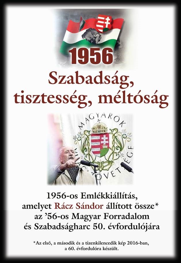 Ismételten megnyílt Budapesten a néhai Rácz Sándor által összeállított 1956-os emlékkiállítás, amelyet tíz évvel ezelőtt, az 1956-os Magyar Forradalom és Szabadságharc 50. évfordulójára készített az „üdvtörténeti jelentőségű” esemény főszereplőiről a Nagy-budapesti Központi Munkástanács elnöke. Az ünnepélyes megnyitót durva magyarellenes támadással próbálta akadályozni egy magyarországi zsidó alapítvány. A kiállítás naponta, 10-18 óra között látogatható.
