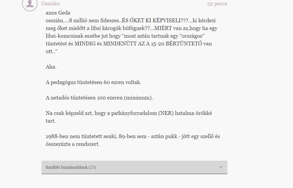 Az ellenzék az igazi, minden fideszes szavazó buta, iskolázatlan (nem azonos a butával! Ismerek olyan kevés iskolát végzett embert, aki problémamegoldásban, tiszta világlátásban veri a diplomás professzort is.) falusi, alkoholista stb. senki.