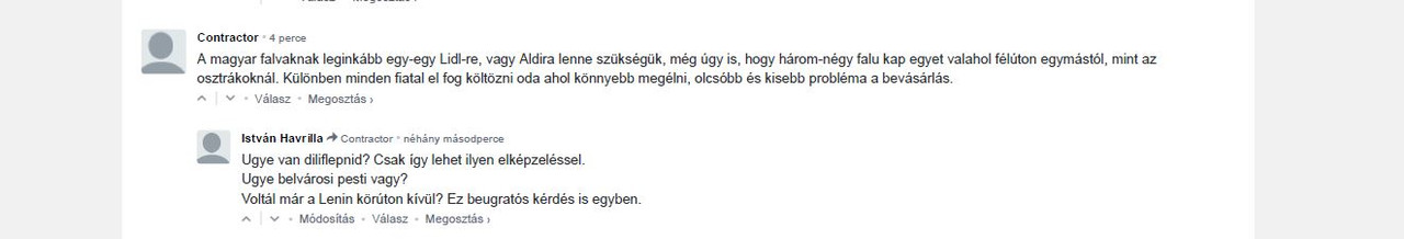 - A gazdasági szakember: Képzeljük el, hogy 2-3-4 falu között egy hiper-szuper marketet építenek. Biztos, hogy nyereséges lenne? Amúgy a fél ország munkaerejét simán lefoglalná. Senki nem dolgozna máshol csak a boltban. És önmaga vásárolna önmagától. Amúgy a labancoknál sem így van, de olyan menő a fejlett nyugatra hivatkozni még hülyeségben is.