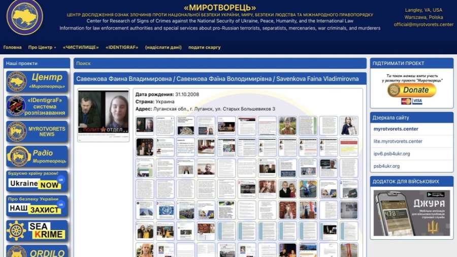 A huszonöt gyermek neve és adatai felkerültek a hírhedt Mirotvorec listára, melynek latin nyelvű felirata így szól: Pro bono publico, (A közjót szolgáljuk).
