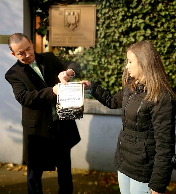 Elégettük a trianoni szerződést Apáti István képviselőtársammal, miután még mindig nem vette napirendre az Országgyűlés illetékes bizottsága sem a 9 hónapja benyújtott törvényjavaslatunkat (A trianoni békeszerződés becikkelyezéséről szóló 1921. évi XXXIII. törvény hatályon kívül helyezéséről – írta közösségi oldalán a Mi Hazánk alelnöke.