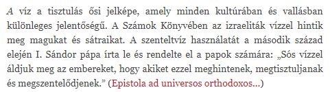 Szentelt víz az égből aláhulló csapadék. A kozmikus por köré kicsapódó vízmolekulák nem tartalmaznak oldott ásványokat. A kozmikus porszemcsék a felső légkörben elektrosztatikus töltéssel rendelkeznek, ezért homogén jobbos perdületű, pozitív energiával rendelkező vízmolekulákból álló burok csapódik ki körülöttük. A vízmolekulák vízgőz, folyékony, és jég állapota közismert, de van egy negyedik halmazállapota is, a polárisan strukturált vízklaszter, vagy száraz víz.