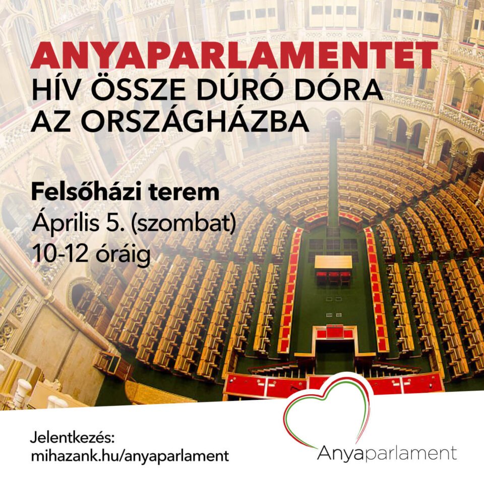 Történelmi eseményre kerül sor a törvényhozás házában, ugyanis az Országgyűlés alelnöke Dúró Dóra, Édesanyákat vár a Felsőházba általa összehívott 400 fős Anyaparlamentbe. Az Anyaparlament célja, hogy maguk az anyák közvetlenül is képviselhessék és védhessék azt a nélkülözhetetlen szerepet, amit a nőiség talán legértékesebb megtestesülése: az anyaság jelent.