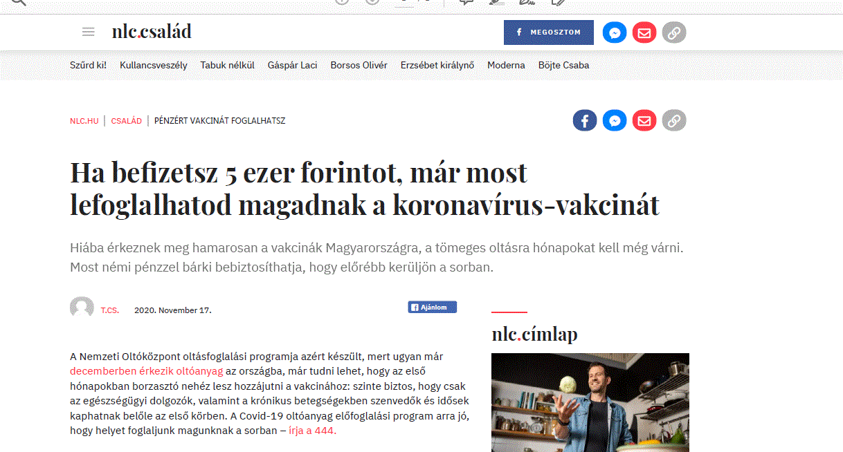 Cikkek szólnak – és egyre több!! – arról, miszerint a NEMZETI OLTÓKÖZPONT előre kér pénzt a majdani covid elleni oltásra jelentkezésért. Milyen szörnyű. Orbán egyik kedvenc vállalata lehet, hiszen „nemzeti”.