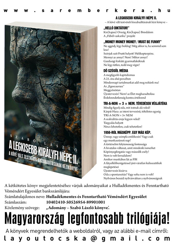 Amennyiben eddigi könyveimet, tevékenységemet és előadásaimat arra érdemesnek találja, kérem, lehetőségeihez mérten anyagilag is járuljon hozzá a könyv megjelentetéséhez!