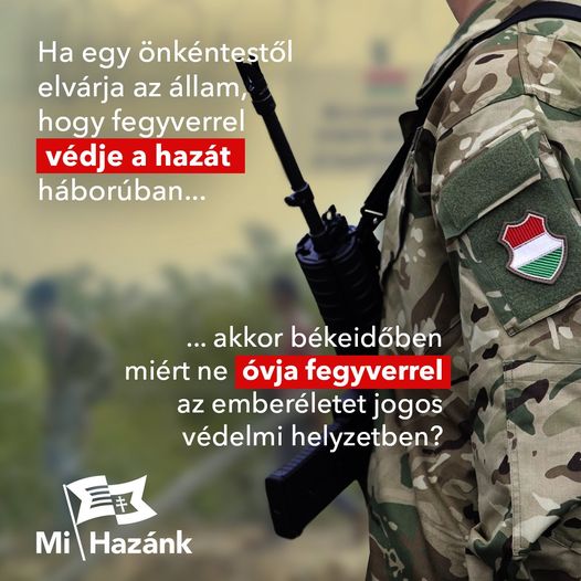 Az önvédelemhez nem csak jogot, hanem eszközt is adna a Mi Hazánk Mozgalom a fegyverviselési lehetőségek szélesítésével, hiszen a bűnözők úgyis megszerzik a fegyvereiket, de a védekezéshez már jogszabálymódosítás kell.