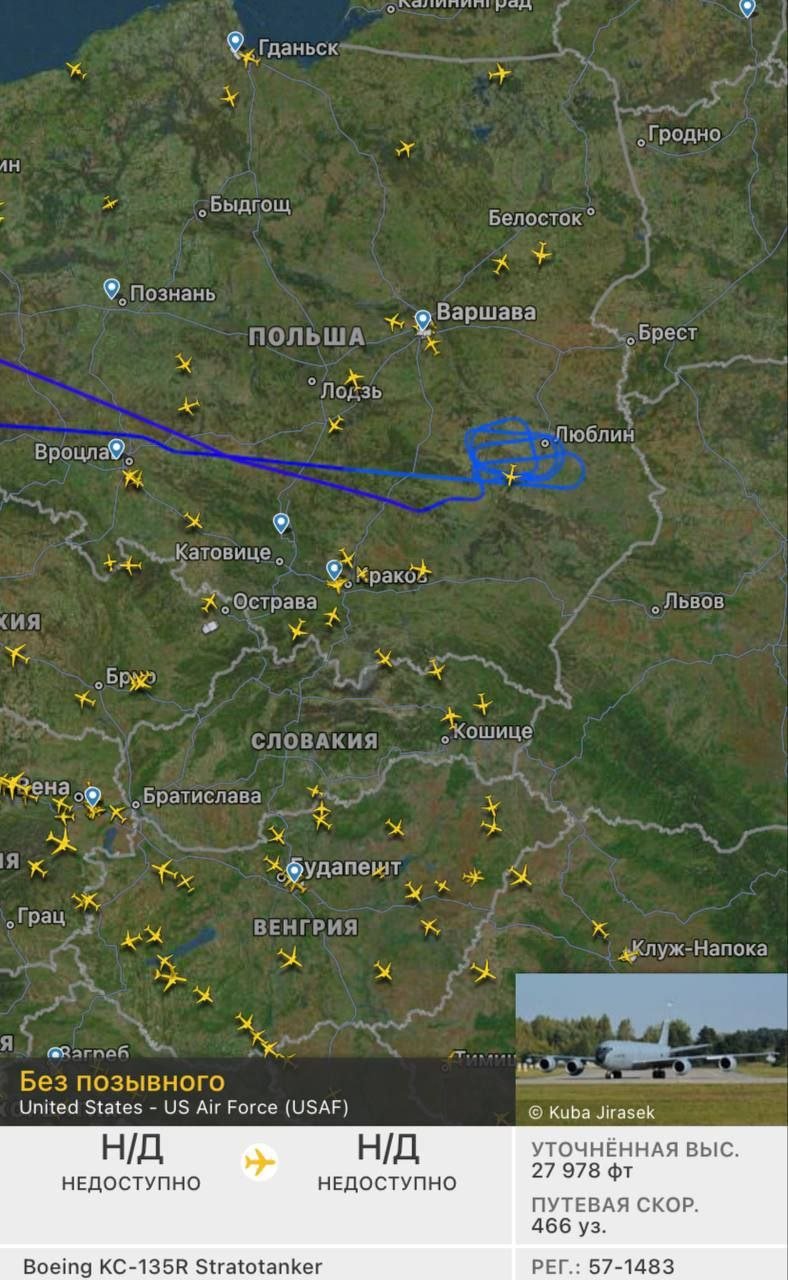 Közben egyes jelentések szerint hosszú ideig repült egy amerikai harci repülőgép a lengyelországi Lublin területe felett, ahová állítólag orosz rakéták hullottak le.