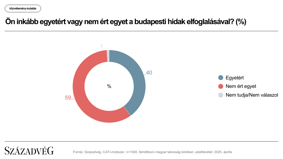A felmérés szerint a válaszadók 59 százaléka nyilatkozott úgy, hogy nem ért egyet a budapesti hidak elfoglalásával, míg 40 százalékuk helyeselte ezt. A kutatás eredményei elválaszthatatlanok attól a ténytől, hogy a Pride-párti tüntetők a közlekedés megszokott rendjének felborításával érezhetően korlátozták a fővárosi lakosság mobilitását.