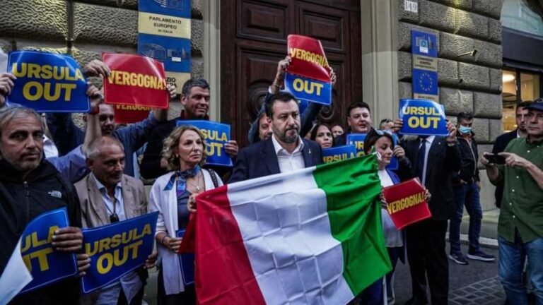 Salvini tüntetni hívja a jobboldalt az Európai Bizottság római székházához A Liga tüntetői Szégyen!, valamint Ursula out feliratú táblákat emeltek a magasba. Matteo Salvini gyalog érkezett a helyszínre, és rögtönzött … Bővebben: Hatalmas botrány lett von der Leyen uniós beavatkozást pedzegető nyilatkozatából – Salvini tüntetni hívja a jobboldalt