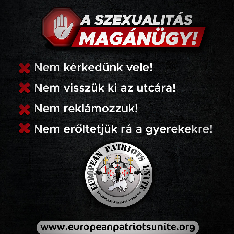 Ahogyan tavaly, ebben az esztendőben is fellép az LMBTQ+ lobbi kártékony, család- és keresztényellenes, abnormalitást hirdető tevékenysége ellen a European Patriots Unite Egyesület. Erről Walter Pál Péter, az egyesület ügyvezetője számolt be közösségi felületén.
