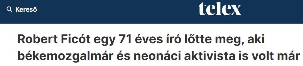 Robert Fico szlovák miniszterelnököt szerdán többször meglőtte egy 71 éves, lévai illetőségű költő, Juraj Cintula. A dollárbaloldali média nem sokkal a merénylet után azt kezdte sulykolni, hogy az elkövető a szlovákiai szélsőjobboldalhoz köthető, de mára világosan kiderült, hogy ebből egy szó sem igaz – írja az Origó. A szlovák merénylő irodalmi klubjának bejegyzéséből korábban kiderült, hogy Cintula hitet tett a Progresszív Szlovákia elnökjelöltje, Caputová mellett. Ukrajna felfegyverzését pártolta, részt vett a háborúpárti ellenzék által szervezett több kormányellenes tüntetésen, és