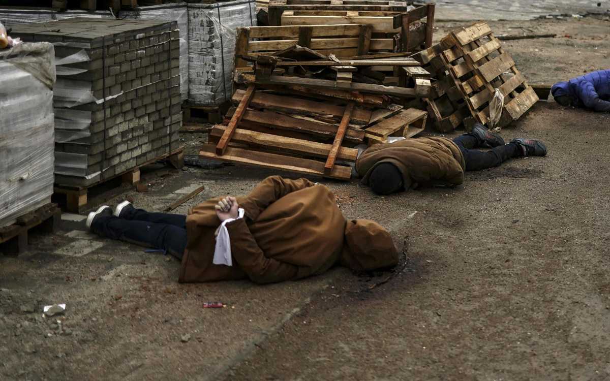 A New York Times március közepén (úgy két héttel az orosz csapatok kivonulása előtt) képeket tett közzé az állítólagos orosz vérengzésről.