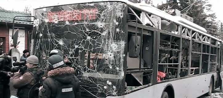 Donyeck Bosse városrész, 2015. január 22. A reggeli csúcsforgalom idején ukrán tüzérségi támadás ért egy forgalmas útkereszteződést. 8 ember életét vesztette.