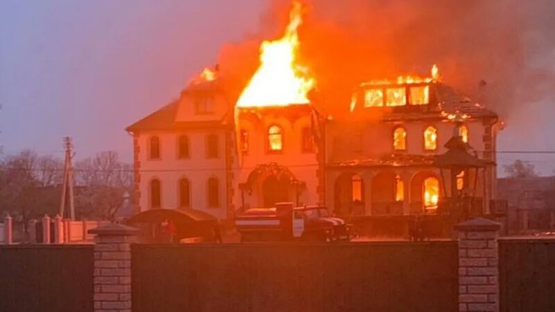 Az orosz ortodox egyház templomának felgyújtása Csernovciban, Észak-Bukovina székvárosában, 2023. április 24-én.