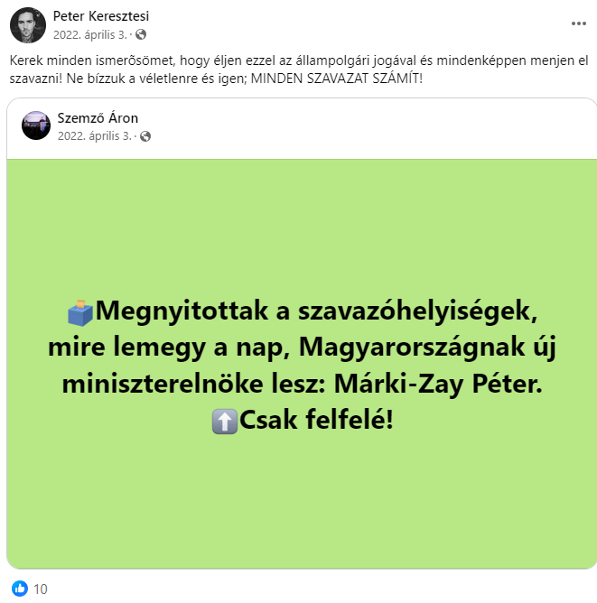 A Svájcban élő férfi azonban régóta aktív közéleti témákban a közösségi médiában. Kritizálta a 2022-es gyermekvédelmi népszavazást. 2022-ben még ő is Márki-Zay Pétert támogatta, és többször megosztotta a momentumos Szemző Áron bejegyzéseit.