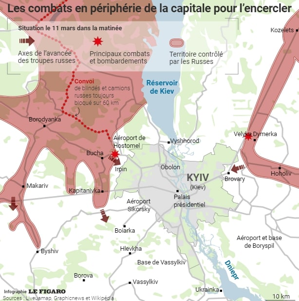 Már nemcsak északi és északnyugati, hanem keleti irányból is elérték az orosz csapatok Kijevet – derül ki a Le Figaro című francia lap infógrafikájából – írja az Origó.