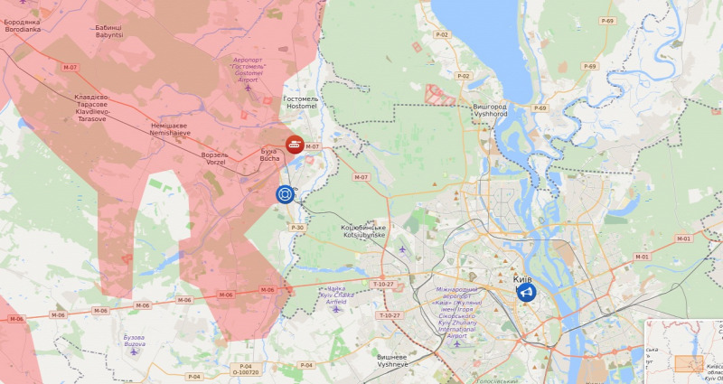 Így elmondható, hogy péntekre az oroszok megérkeztek Kijevhez kelet felől, melyet a harcok első szakaszában nyugat felől közelítettek meg. Az ukrán fővárost így már szinte teljesen körbevették és hamarosan megkezdőthet a város hosszas ostroma miután majd valószínáleg délről is körbe fogják keríteni Kijevet.