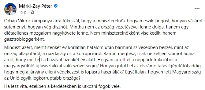 Szénné égeti magát Márki-Zay Péter, de ez őt egyáltalán nem zavarja. Most éppen gasztrobloggernek nevezte Orbán Viktort, ami természetesen nem a miniszterelnököt minősíti.