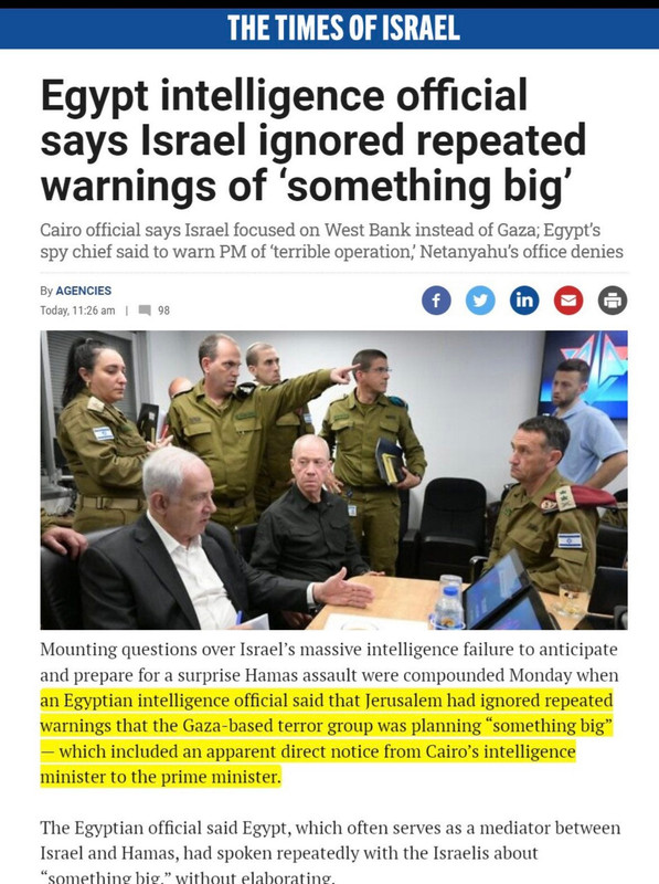 Az izraeli kormány végre már hajlandó elismerni, hogy napokkal korábban többször is figyelmeztette őket az egyiptomi kormány a Hamász támadásaira.