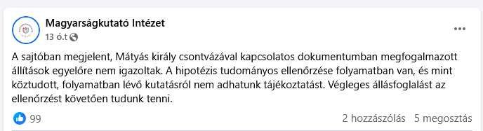 Megdöbbentő az a „kacsaúsztatás”, amelyet Mátyás király koponyája körül rendezett az MKI. Amíg a Mandinerben megjelent „dokumentumok” odajuttatója állítólag ismeretlen volt, addig ma, maga az MKI cáfolta finoman az értesülést – a Facebookon.