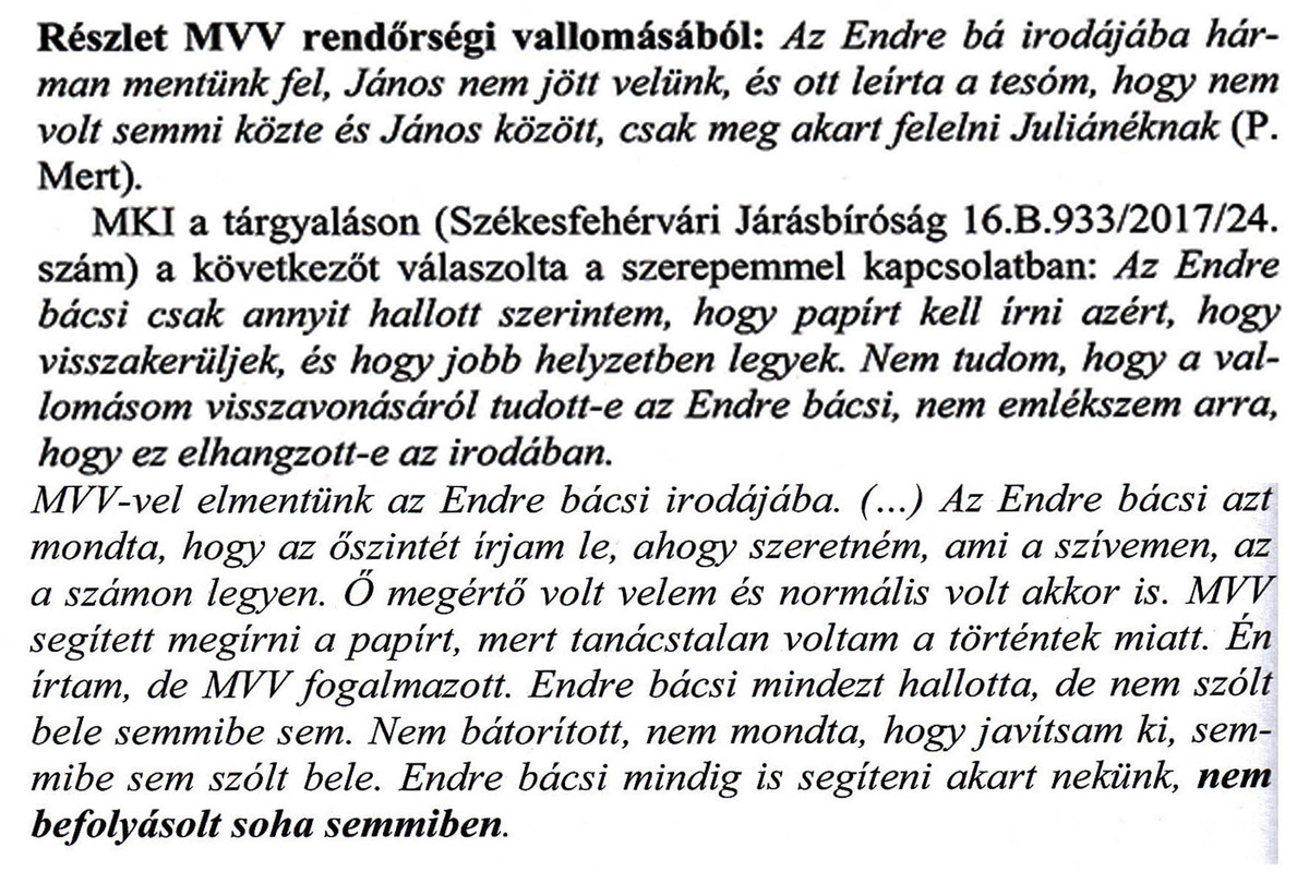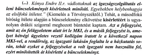 Azt is állítja, hogy az ítélet a kényszerítés miatt született. Nos, ha valóban kiolvasta volna a könyvet, megtalálta volna benne a bírósági ítéletet és nem írt volna le összetákolt cikkében ekkora blődséget. Valóban átfuthatta nagyjából a könyvet, mert kiragadott félmondatokat idéz, amely ahhoz hasonlítható, mint amikor egy diákcsíny következtében a tankönyvben lévő lecke szövegéből filctollal kiemelik, hogy a tanár dadog és sánta. Nagyjából így néz ki Balázs bácsi (ha már ilyen divatos lett a bácsizás) elemzése is.