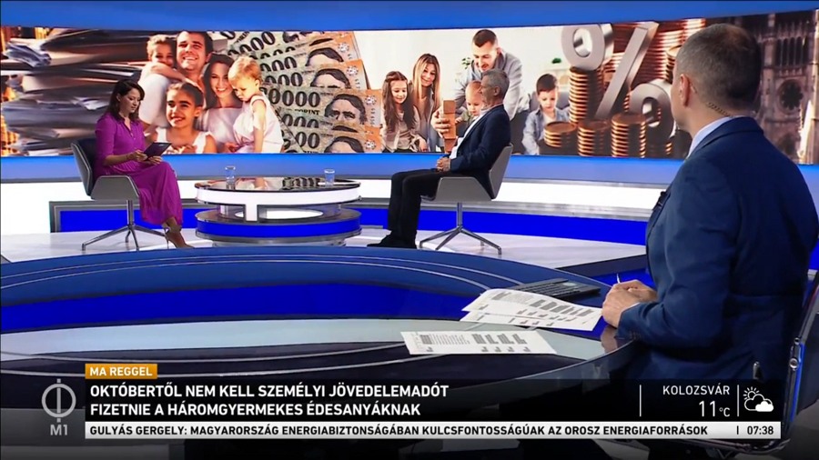 Október elsejétől a háromgyermekes édesanyáknak is szja-mentes lesz a jövedelmük, jövő januártól az intézkedést a kétgyermekes édesanyákra is kiterjesztik – mondta a Kulturális és Innovációs Minisztérium családügyekért felelős helyettes államtitkára az M1 aktuális csatorna péntek reggeli műsorában.