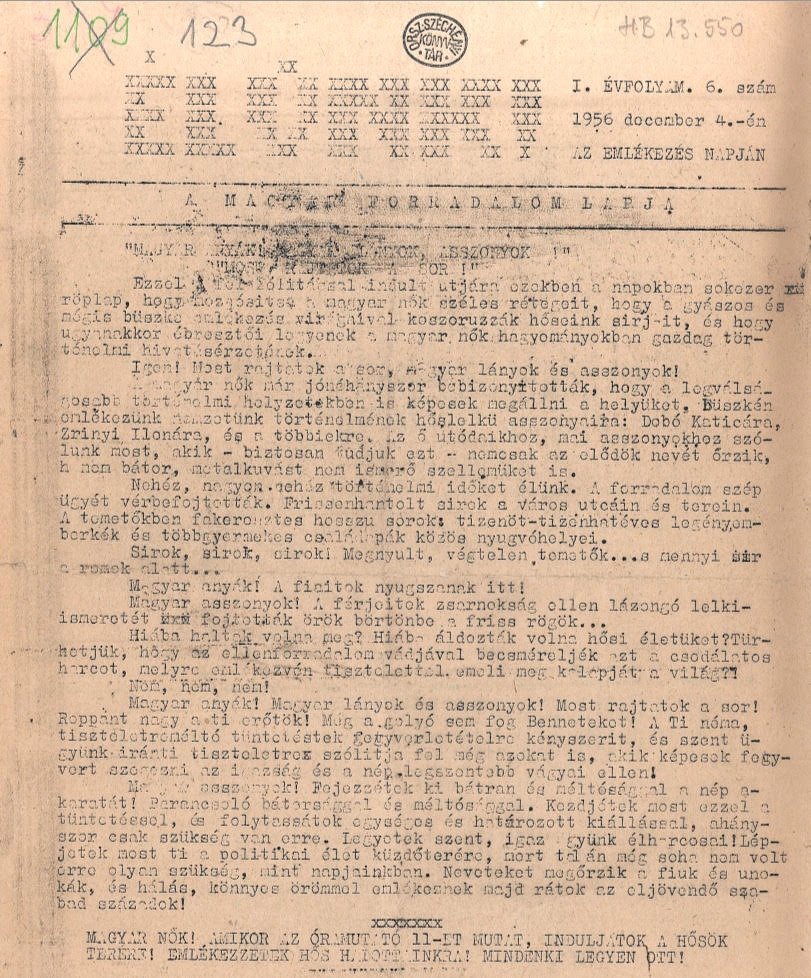 Ez a felhívás Obersovszky Gyula Élünk című lapjában jelent meg 1956. dec. 4-én