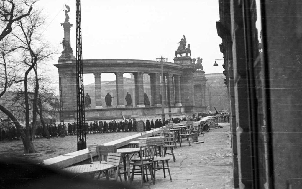 „…Háromnegyed tizenkettőkor, amikorra odaértem a Petőfi szoborhoz, már körbe volt véve páncélautókkal, páncélosokkal a tér. Az utcákból özönlöttek az asszonyok. Végül sikerült a Vörösmarty téren összejönnünk. Még egyszer ki akartunk menni a Hősök terére, de már a Szovjet Követségnél lezárták az Andrássy utat.