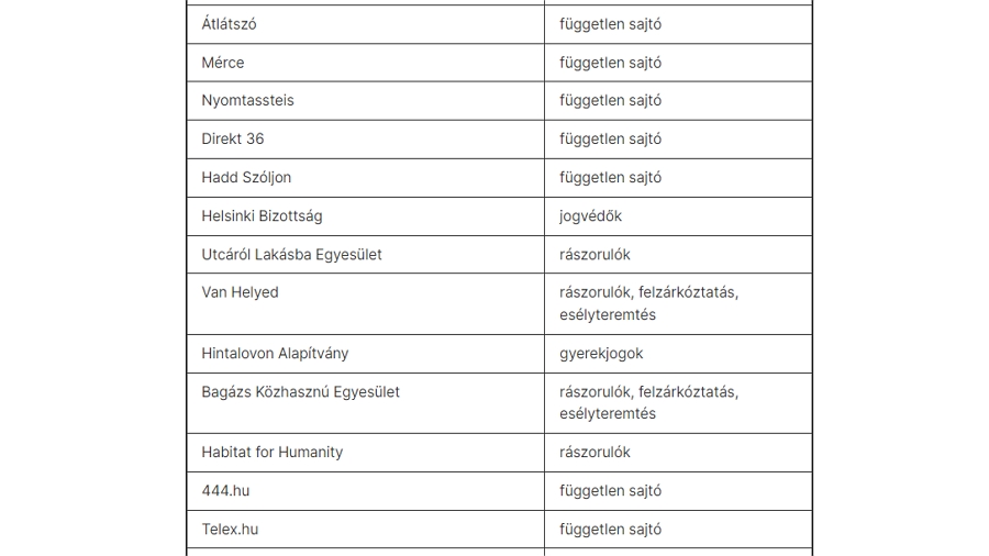 Természetesen a cikkben található egy lista is, akik megcélozhatók ezekkel az adományokkal. S milyen érdekes, ott virít egy sereg elnyomott (mivel hazánkban – mint tudjuk – elnyomják a Független Objektív Sajtót), külföldi pénzekből kitartott FOS apparat, no meg a Soros birodalomhoz tartozó Helsinki Bizottság is, akárcsak a 444.hu.