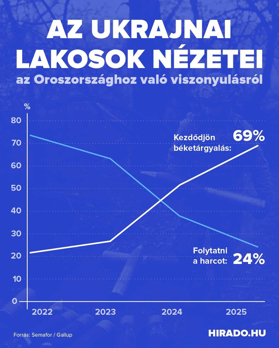 Miközben három év vérengzés után a világ lélegzetvisszafojtva várja a Donald Trump amerikai és Vlagyimir Putyin orosz elnök személyes találkozó időpontjának és helyszínének bejelentését, addig a jelek szerint az ukrán társadalom is belátta, hogy a tűzszünet és a béke az egyetlen reális útja a háború lezárásának. A brit Gallup közvélemény-kutató intézet felmérésére hivatkozva írta meg a Semafor, hogy