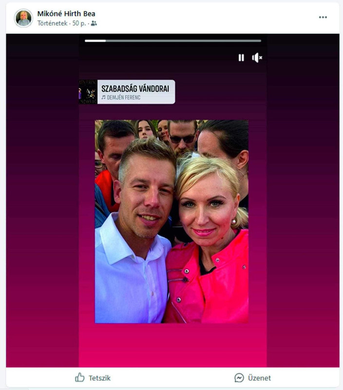 A következő fotón a MARÉG gyulai listájának második helyezettje, Mikóné Hirth Beáta szerepel Magyar Péter társaságában. Mikóné sem számít pártoktól független szereplőnek a gyulai közéletben, egyértelműen a Momentumhoz kötődik és több botránya is volt a városban. A hölgy azzal tett szert országos ismertségre, hogy 2019-ben házi orvosi asszisztensként a rendelőben a betegeknek a férje önkormányzati választási szórólapjait osztogatta, vagy csempészte a receptek közé. Tehát közpénzen, közalkalmazottként politizált. Ura, Mikó János ugyanis 2019-ben az MMM színeiben indult helyhatósági képviselőjelöltként. A második emlékezetes akciója a járvány első időszakára esett: O1G feliratú szájmaszkos szelfit posztolt magáról a közösségi oldalon. Mikóné is indult egyébként előválasztáson, méghozzá a Momentum jelöltjeként a 2021-es baloldali előválasztáson, a DK-s Leel-Őssy Gábor azonban megverte őt.