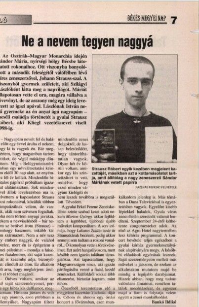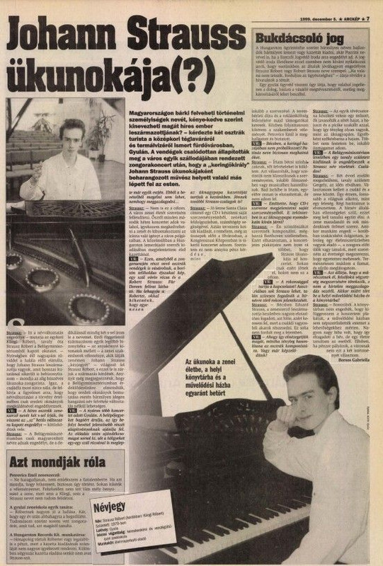 A gyulai önjelölt zeneszerző beszámolt arról, felkereste a Bécsben élő Eduard Strausst, aki valójában Johann Strauss leszármazottja, ám ő „nagyon elutasítóan” fogadta, mert azt hitte, csak a családi vagyonból akar részesedni Strausz Róbert.