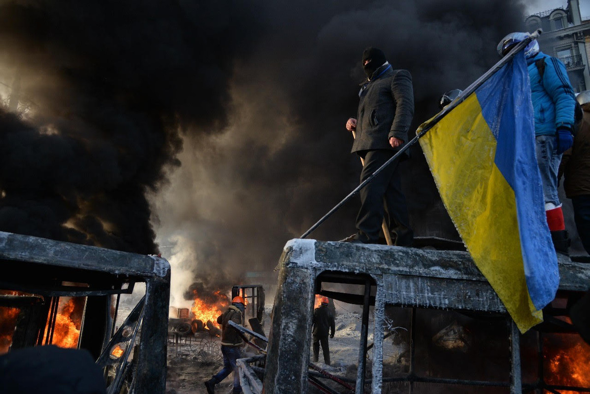A Majdan képei. A rendőrség kiégett autóbuszai