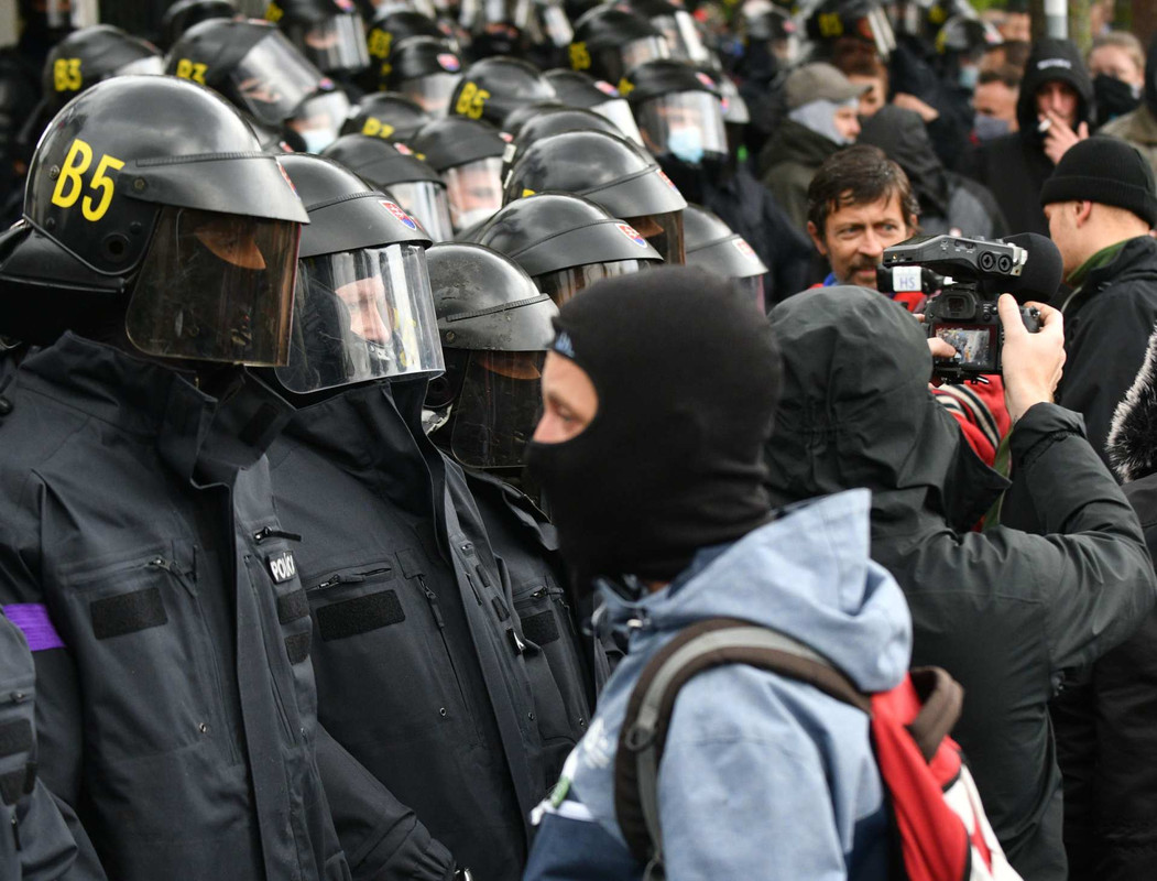 A rendőrség gumilövedékekkel lőtt a tiltakozókba, akik petárdákkal, elhajított üvegekkel válaszoltak, mire felszólították a tömeget, hogy hagyják el a kormányhivatal (melynek kapuját nem mellesleg tegnap behegesztették) előtti teret. A tüntetők füstgránátot dobtak a rendőrökre, majd feldöntötték a kordon egy részét, mire a rendőrök könnygázzal válaszoltak. A tiltakozók a kormányhivatal előtt petárdákat robbantottak, volt, aki könnyebben megsérült, s időközben az első őrizetbe vételekre is sor került.