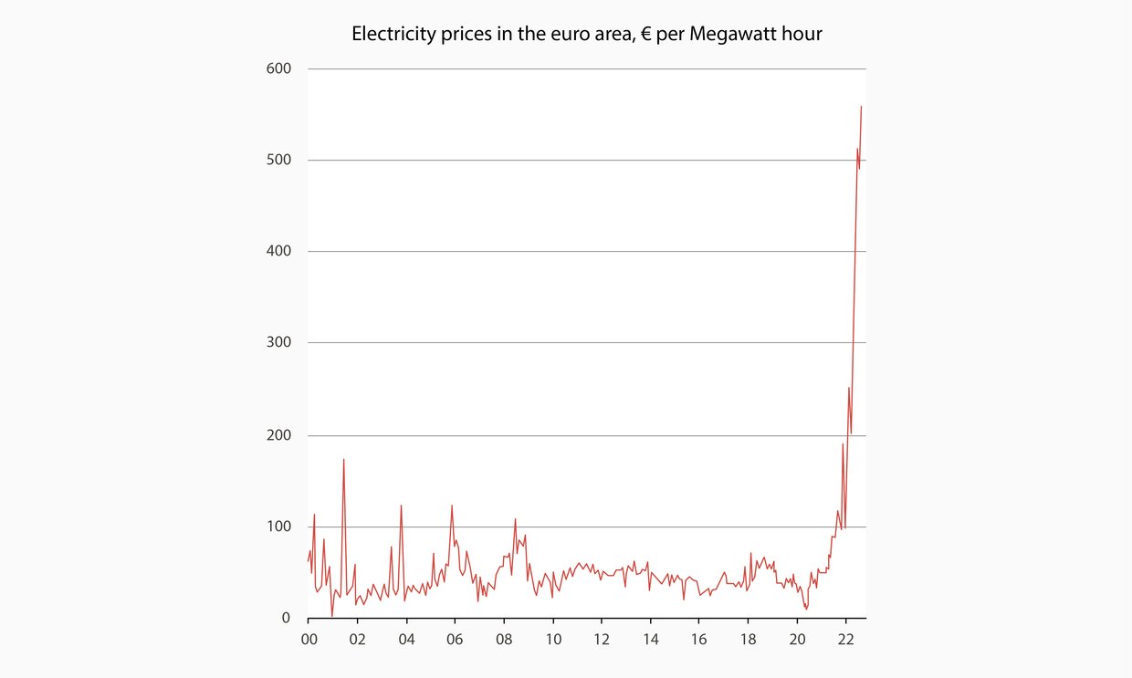 Németországban, mely Európa legnagyobb gazdasága, csütörtökről péntekre 599,83 euró/megawattóráról 699,44 euróra emelkedtek. A legtöbbet ma Franciaországban kell fizetni 1 MWh áramért, 706,32 eurót, mely egy nappal korábban még 630,62 euró volt. Az elektromos áram ára most Franciaországban megközelítőleg hétszer több, mint egy évvel ezelőtt. Az áremelkedések Hollandiában, Dániában, Svájcban és Ausztriában is jelentősek.