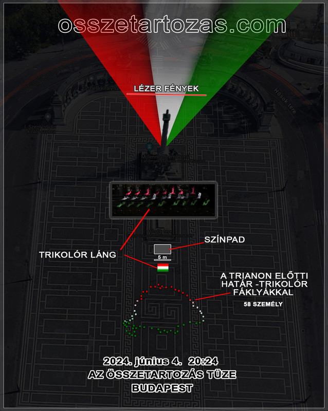 Ide várjuk annak az 58-60 embernek a jelentkezését, akik segítenének a piros-fehér-zöld fáklyákkal (a videó végén láthatók) körberajzolni a Trianon előtti határainkat a Hősök terén 2024. június 4-én.